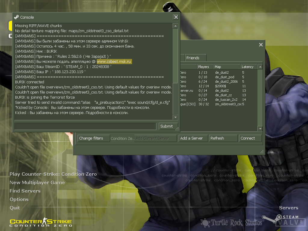 [AMXBANS] Ваш SteamID : ' STEAM_0 : 0 : 1562013035 '