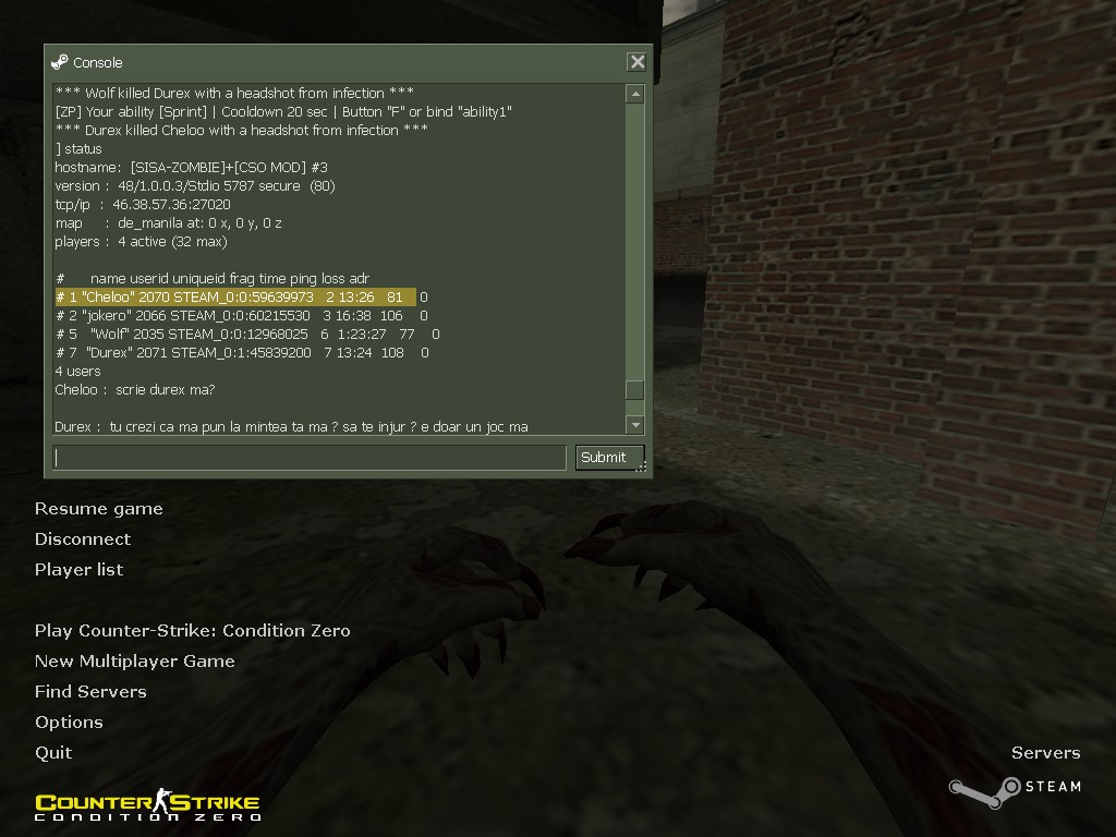 2013-10-03 01:28:55 | STEAM_0:1:30673081 | Zombie | [zm team] Dead Moroz : nu raz poh...