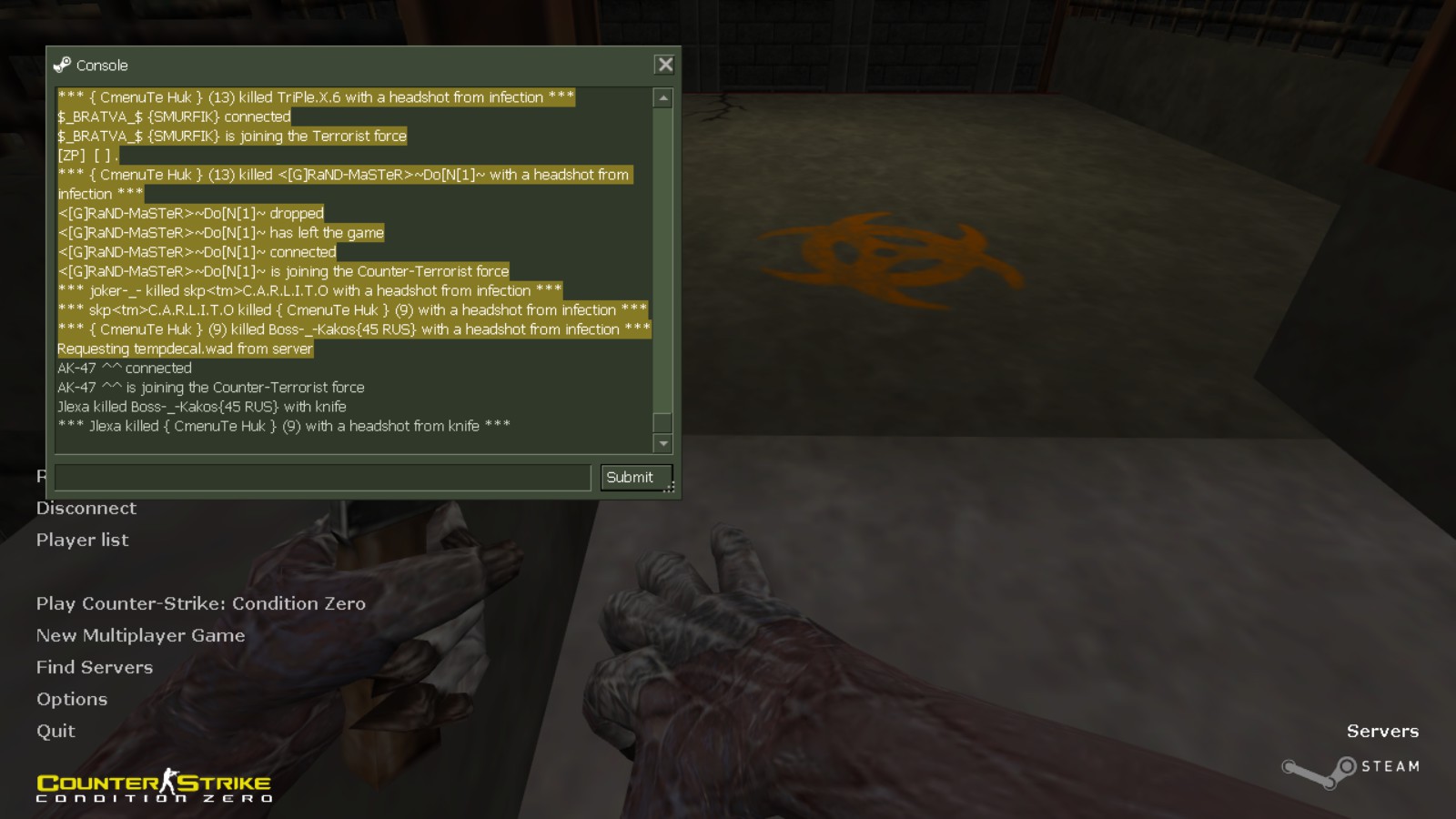 2013-12-09 01:19:59 | STEAM_0:0:75994617 | Zombie | wolfpl : kill me