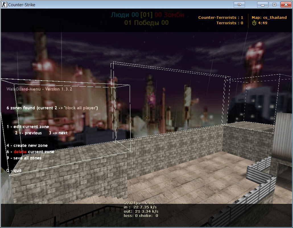 Добавил Зоны на ТаунБета. Их не видно в начале раунда к сожалению, т.к. блоки чуть выходят за границы стен карты. Со временем подтяну их. Там закрыты все крысозасадки, под 0. Все верха, подвалы, и т.д.
