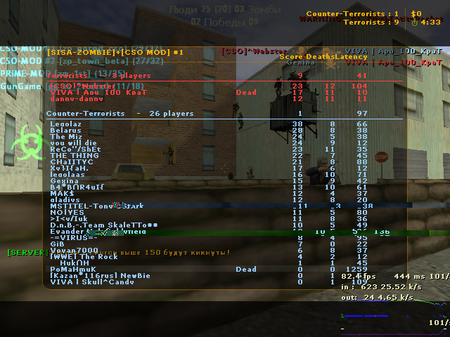Сразу же хочу сказать, что на наших серверах нет лагов (вы можете легко в этом убедиться, набрав в консоли своего CS клиента команду net_graph 1 ) и мне порой бывает обидно, когда заходит какой-нибудь сельский нуб с таким же сельским интернетом и начинает всем втирать про свои лаги. Ваши лаги - это ваша проблема и она должна волновать только вас.